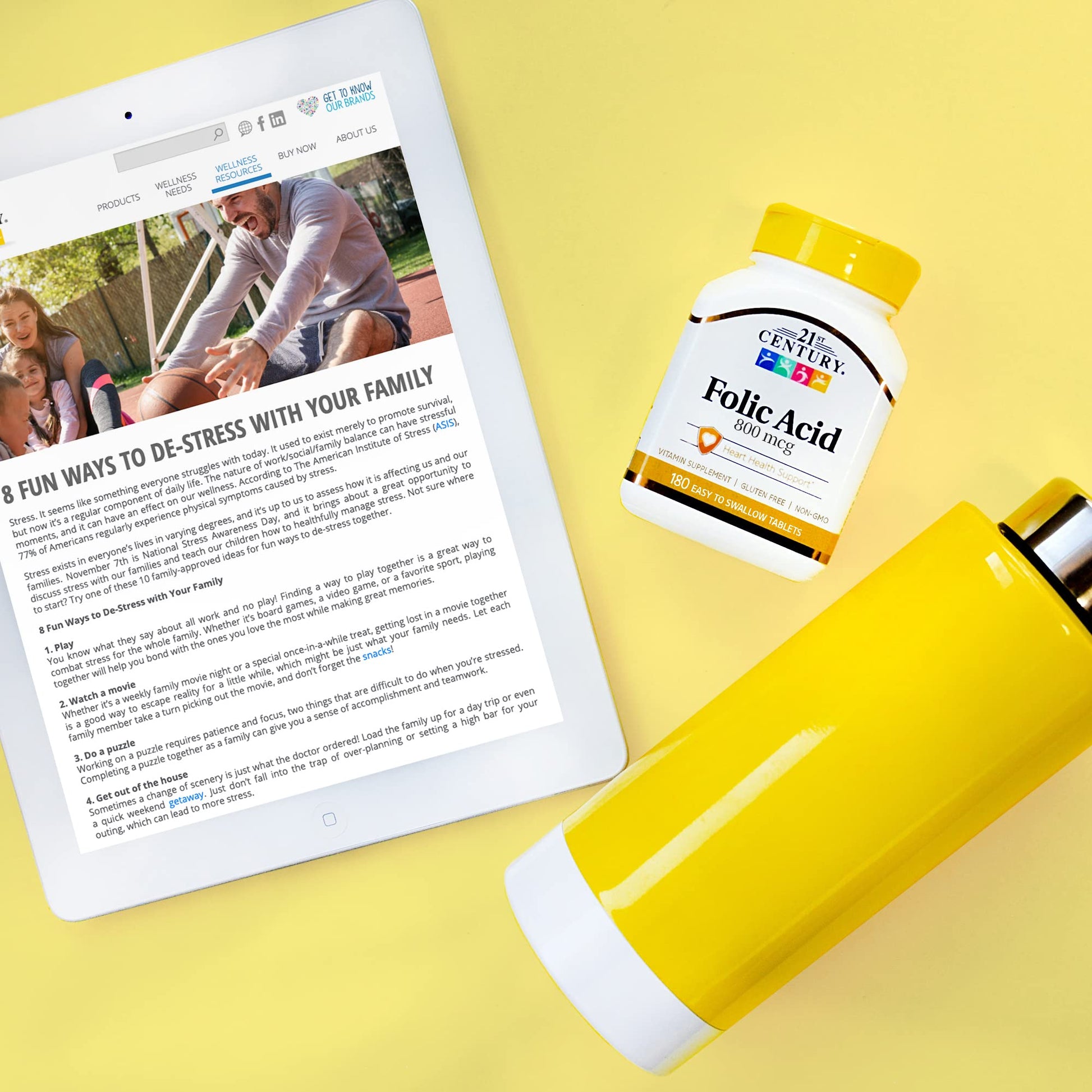 Pre-Order | Arrives in 5–10 Days – 21st Century 800 mcg Folic Acid Tablets, Assorted, 180 Count