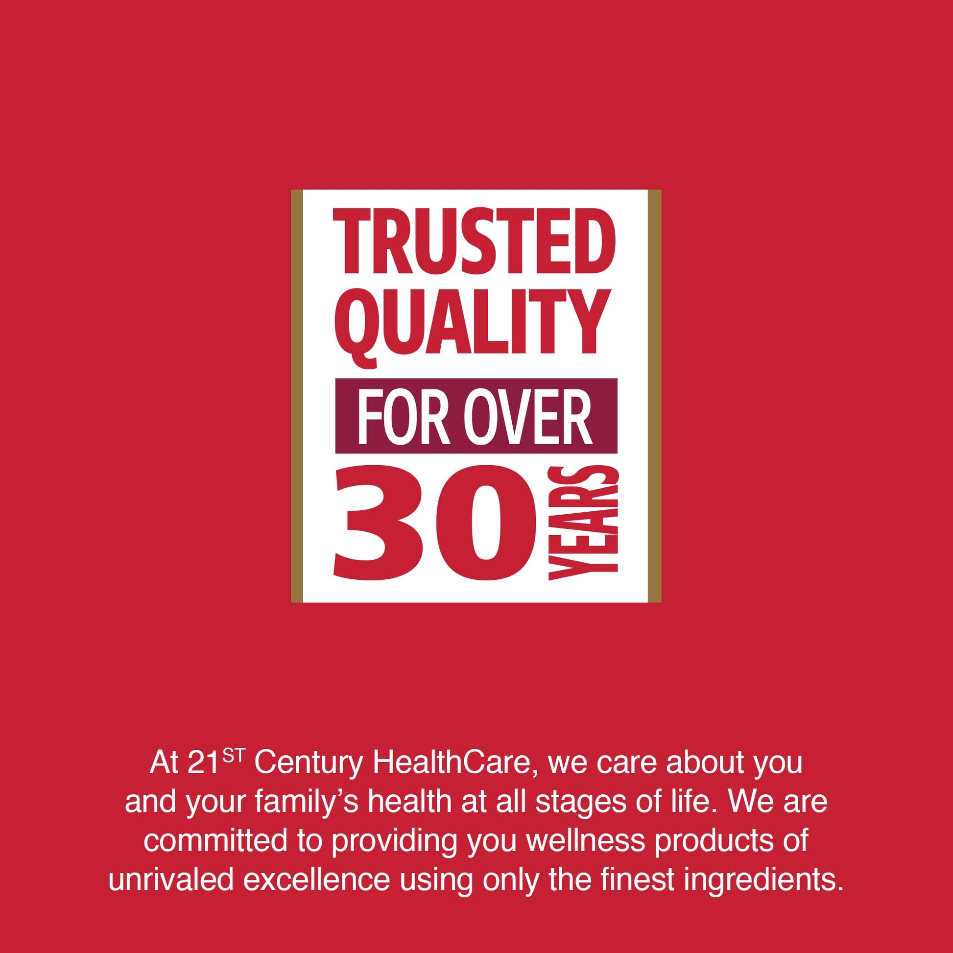 - For over 30 years, 21ST Century Vitamins has provided trusted vitamins and supplements by upholding the highest standards of quality in every product we offer. From sourcing the finest ingredients to rigorous testing and production processes, we ensure that every product meets our stringent quality benchmarks. We are here to support your wellness every step of the way.