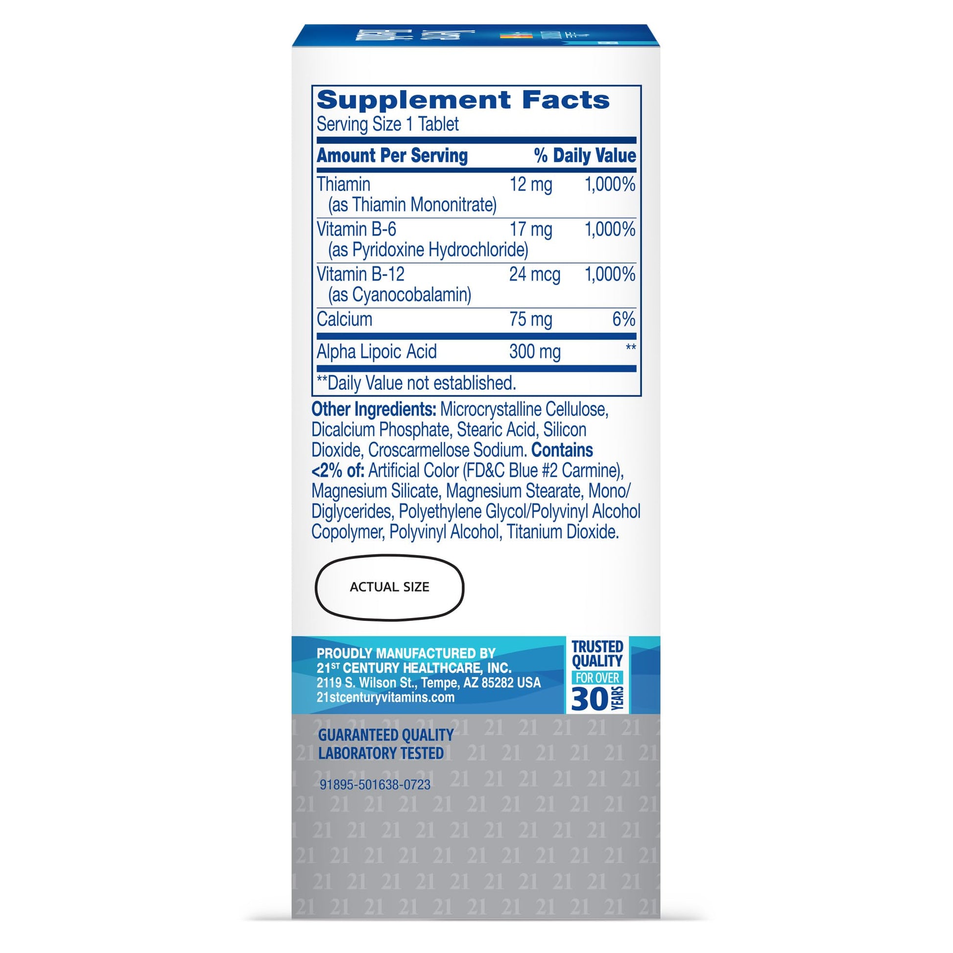 - RELIABLE SUPPORT FOR NERVE HEALTH & FUNCTION*: Formulated with Alpha Lipoic Acid and crucial B Vitamins (B1, B6, B12), the 21st Century Nerve Health* supplement helps support healthy nerve function head to toe, while promoting overall well-being*
