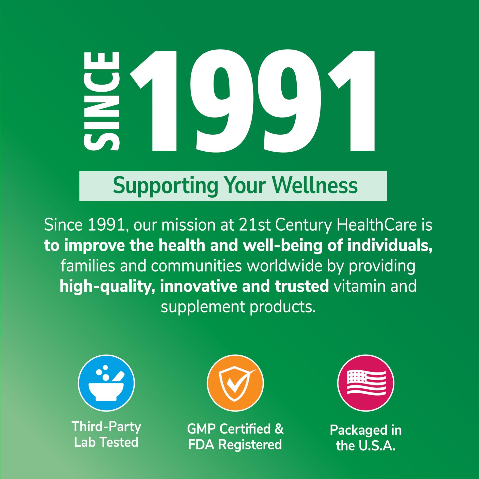 - For over 30 years, 21ST Century Vitamins has provided trusted vitamins and supplements by upholding the highest standards of quality in every product we offer. From sourcing the finest ingredients to rigorous testing and production processes, we ensure that every product meets our stringent quality benchmarks. We are here to support your wellness every step of the way.