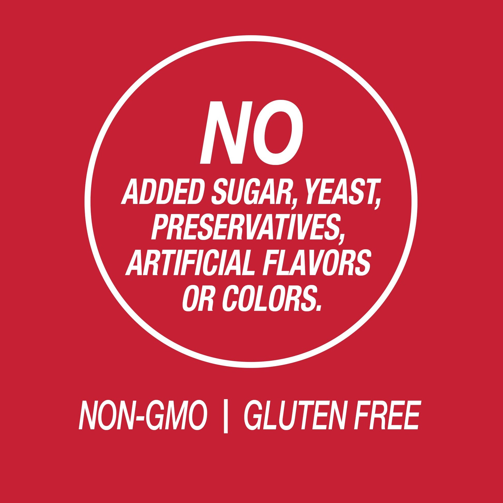 - NO ADDED: No added Sugar, Yeast, Preservatives, Artificial Flavors or Colors. Gluten Free. Non-GMO.