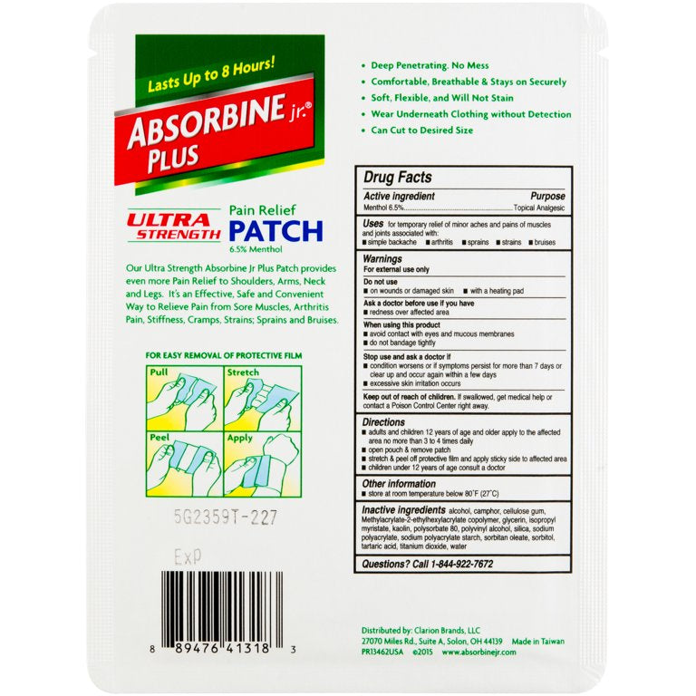 ABSORBINE PLUS ULTRA STRENGTH PAIN RELIEF PATCH