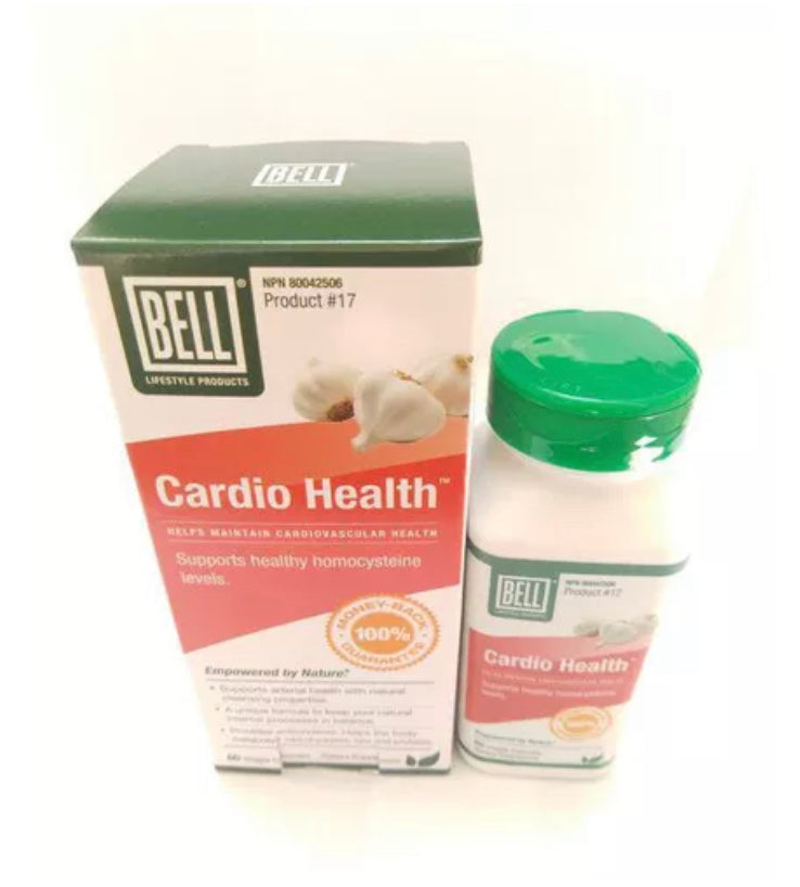 Bell Cardio HealthFormulated to help reduce inflammation in the arteries and promote cardiovascular health. This unique formula helps to keep your internal processes in balance.Vitamins B6 and B12 play key roles in converting homocysteine to methionine (one of the amino acids from which the body builds new proteins). Garlic's flavonoids and sulfur-rich phytonutrients help protect the cardiovascular system and enhance the immune system.Provides antioxidants that help defend against free radical damage to cells.GMO Free and Allergen Free.
