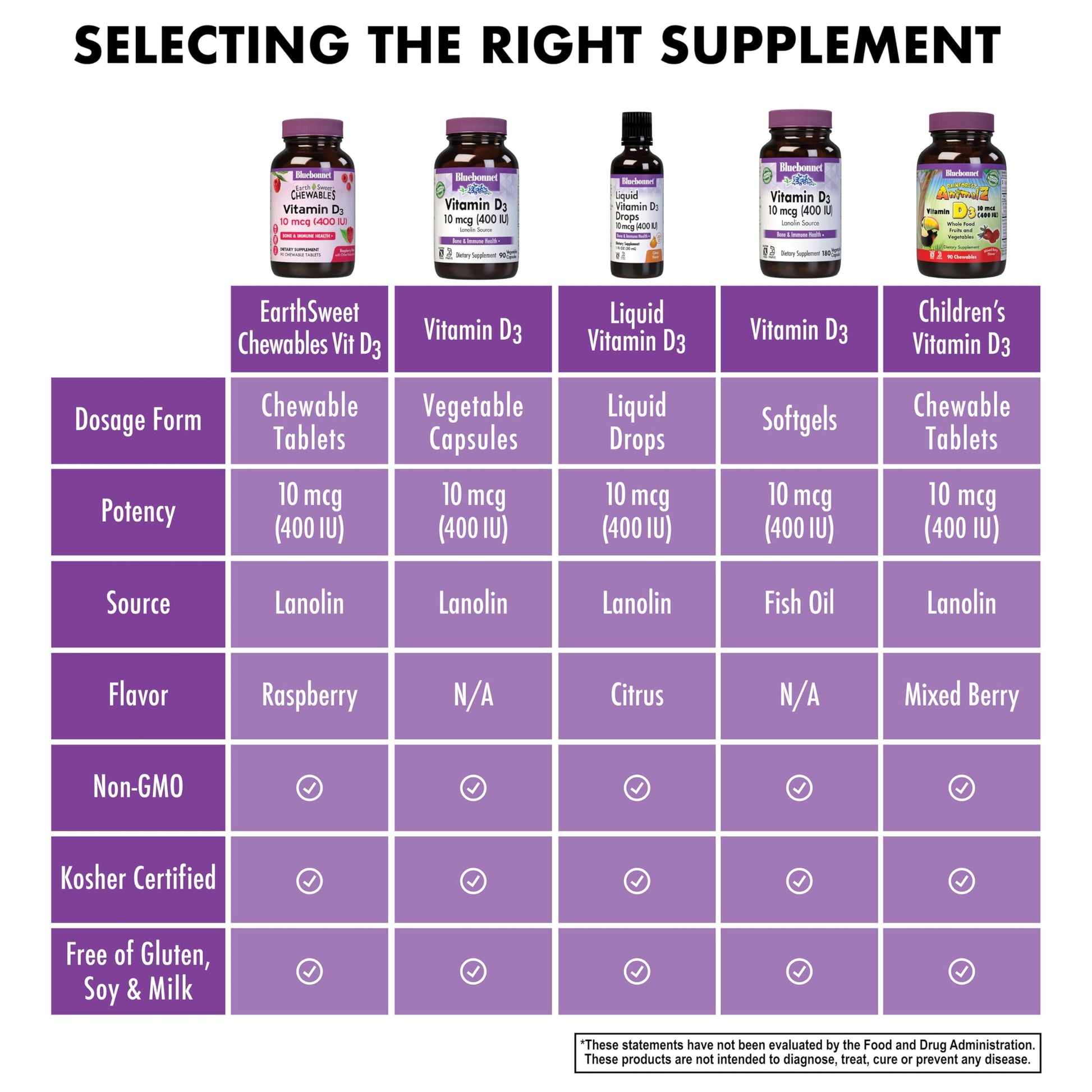 Details: Bluebonnet's EarthSweet Chewables Vitamin D3 10 mcg (400 IU) Tablets are formulated with vitamin D3 (cholecalciferol) from lanolin that supports strong healthy bones and immune function in a delicious raspberry flavor. Sweetened with EarthSweet, a proprietary sweetening mix of fruit powders and sugar cane crystals. ♦