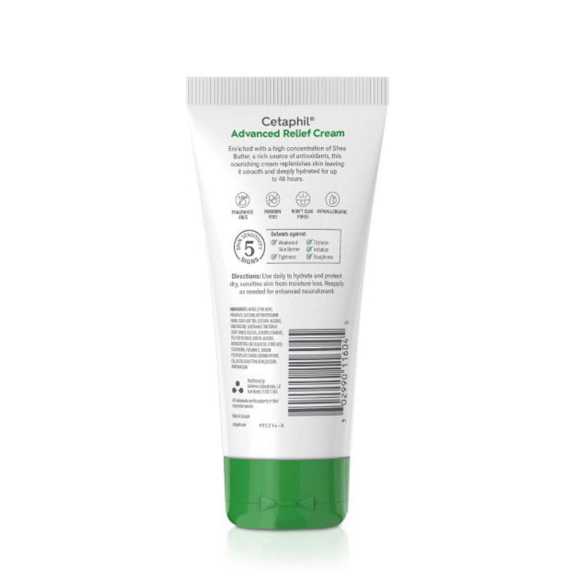CETAPHIL Advanced Relief Cream is formulated with shea butter to nourish skin and leave it feeling soft, smooth and restored. This rich cream is clinically proven to lock in moisture and replenish continuously dry, sensitive skin for 48 hours. Long lasting hydration visibly enhances skin tone, texture and luminosity. Enriched with safflower seed oil to smooth and soften dry skin, and vitamin E to support moisture barrier function. 94% reported softer and smoother skin in 1 week. This advanced formula helps to defend against 5 signs of skin sensitivity. This nourishing cream is hypoallergenic, fragrance free, paraben free and non-comedogenic, suitable for even the most sensitive skin and dermatologist developed for all skin tones and types. For complete care of your continuously dry, sensitive skin, use together with CETAPHIL Advanced Relief Lotion for optimal skin hydration.