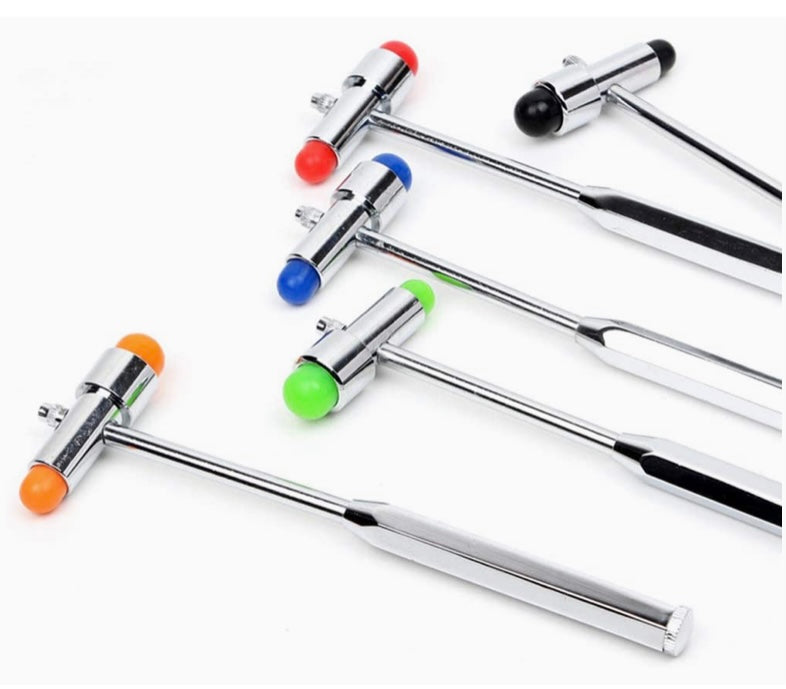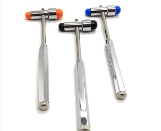 - The hammer features two heads, one end is small, and one end is large for precise tendon percussion.