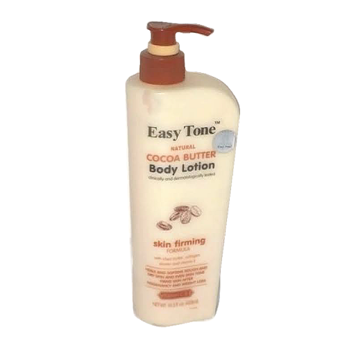 Easy tone cocoa butter lotion is a skin-firming solution with shea butter, collagen, elastin, and vitamin E that has been scientifically and dermatologically tested. It maintains your skin looking healthy and smooth. Stretch marks and sensitive skin can be treated with Easy Tone Cocoa Butter Body Lotion.