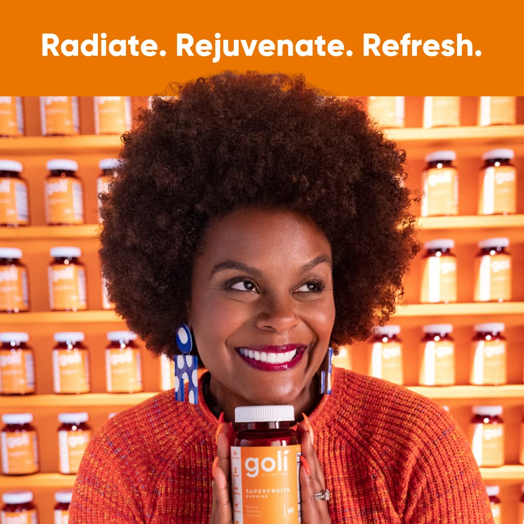 - Radiate. Rejuvenate. Refresh. Introducing an easy, delicious way to incorporate vitamins and collagen-promoting ingredients into your everyday wellness routine. Goli Superfruits Gummies are uniquely crafted with antioxidants and essential nutrients to support a healthy immune system, promote collagen formation, maintain skin strcuture and elasticity, and more.