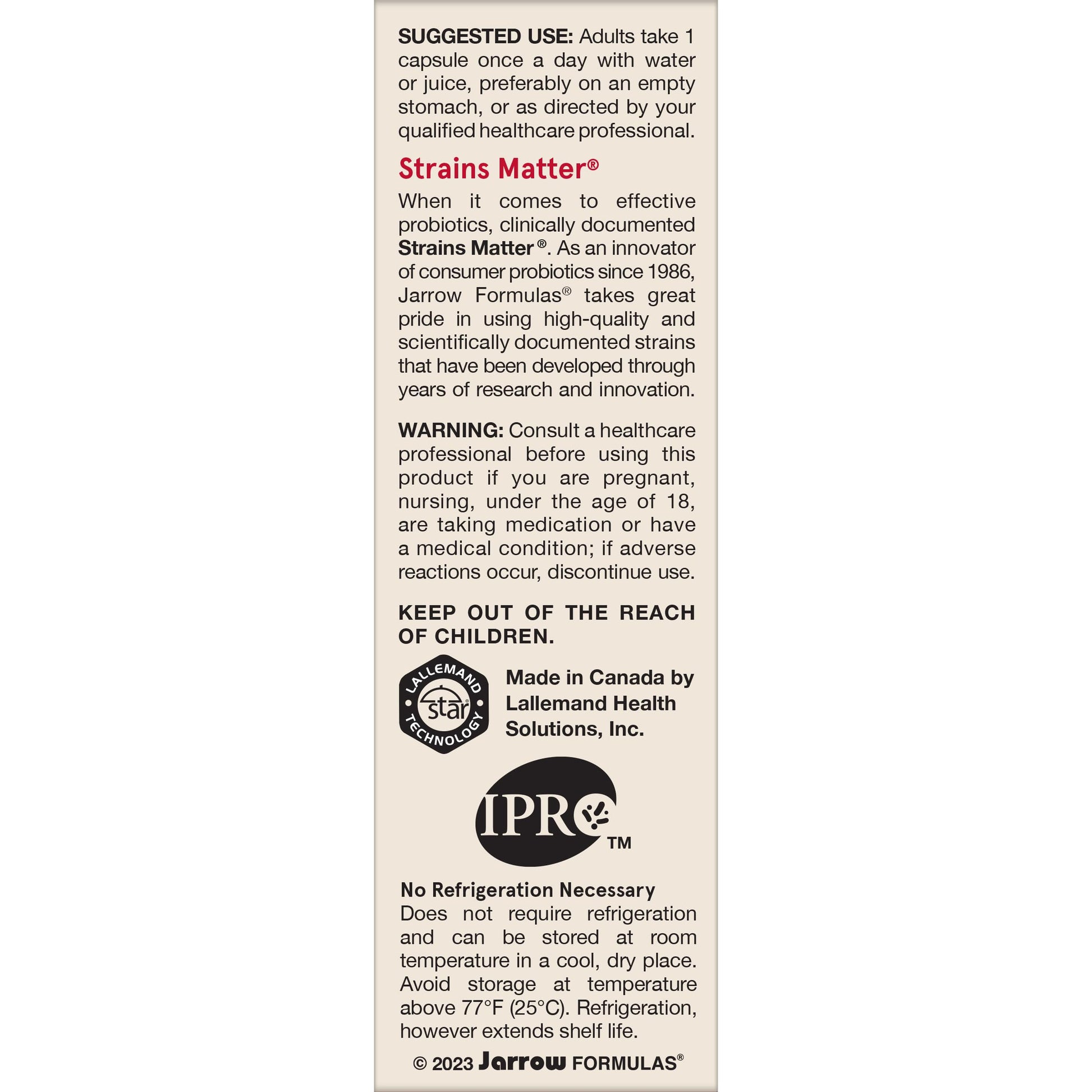 Details: Rescue your gut with Jarrow Formulas Jarro-Dophilus EPS Advanced. Jarro-Dophilus EPS supports the health of the intestinal tract with a balanced mixture of CFUs and carefully selected probiotic strains to support regularity and microflora balance.(1) This formula also provides certain strains that help support a better mood through the gut brain connection.(1) This digestive support for up to adults provides 10 strains of probiotic bacteria are delivered via proprietary enteric coated capsules that protect the probiotic bacteria from stomach acid and deliver the potency of friendly bacteria needed to support a healthy gut.(1) Jarro-Dophilus EPS is blister-packed to protect the capsules from moisture and room temperature stable, the live probiotics don't require refrigeration. These probiotic supplements are vegetarian. Adults take one capsule once a day with water or juice, preferably on an empty stomach, or as directed by your healthcare professional. When it comes to effective probiotics, clinically documented Strains Matter(R). Trust Jarrow for up to all your probiotics and prebiotics needs. Jarrow Formulas Superior Science. Smarter Formulas. (1)These statements have not been evaluated by the Food and Drug Administration. This product is not intended to diagnose, treat, cure or prevent any disease.