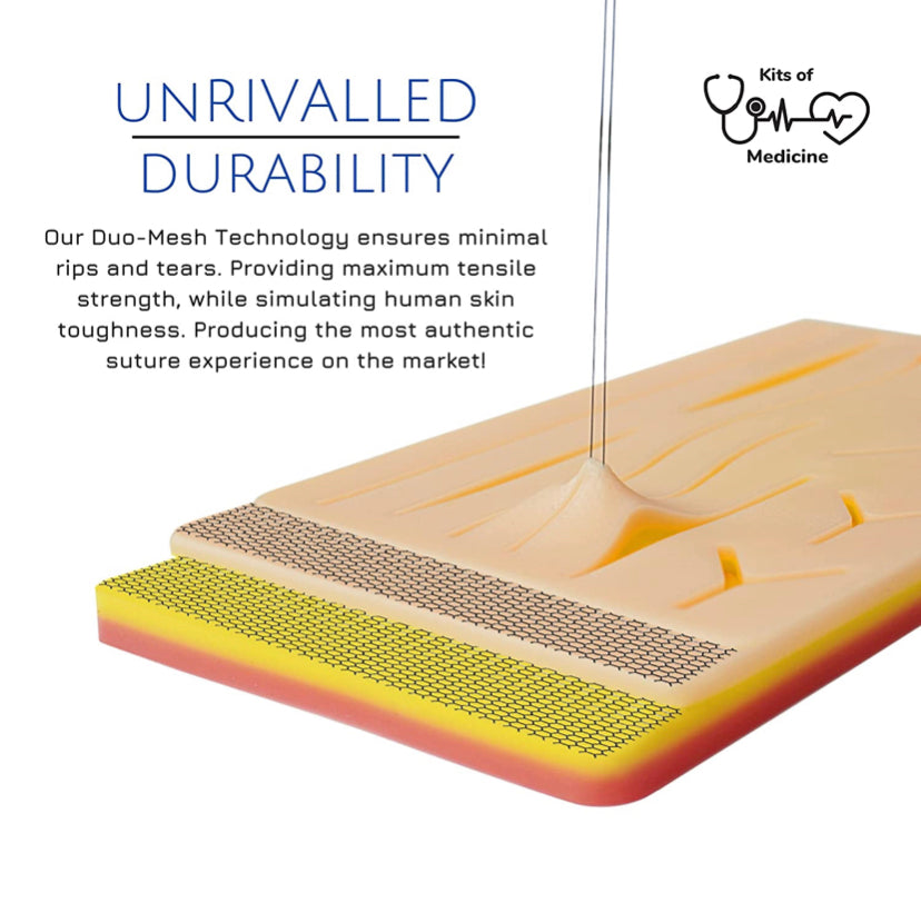 - Anatomical 3-layer suture pad with 14 wounds, including a built-in mesh for added durability, creating an authentic suturing experience! (17 x 13 cm)