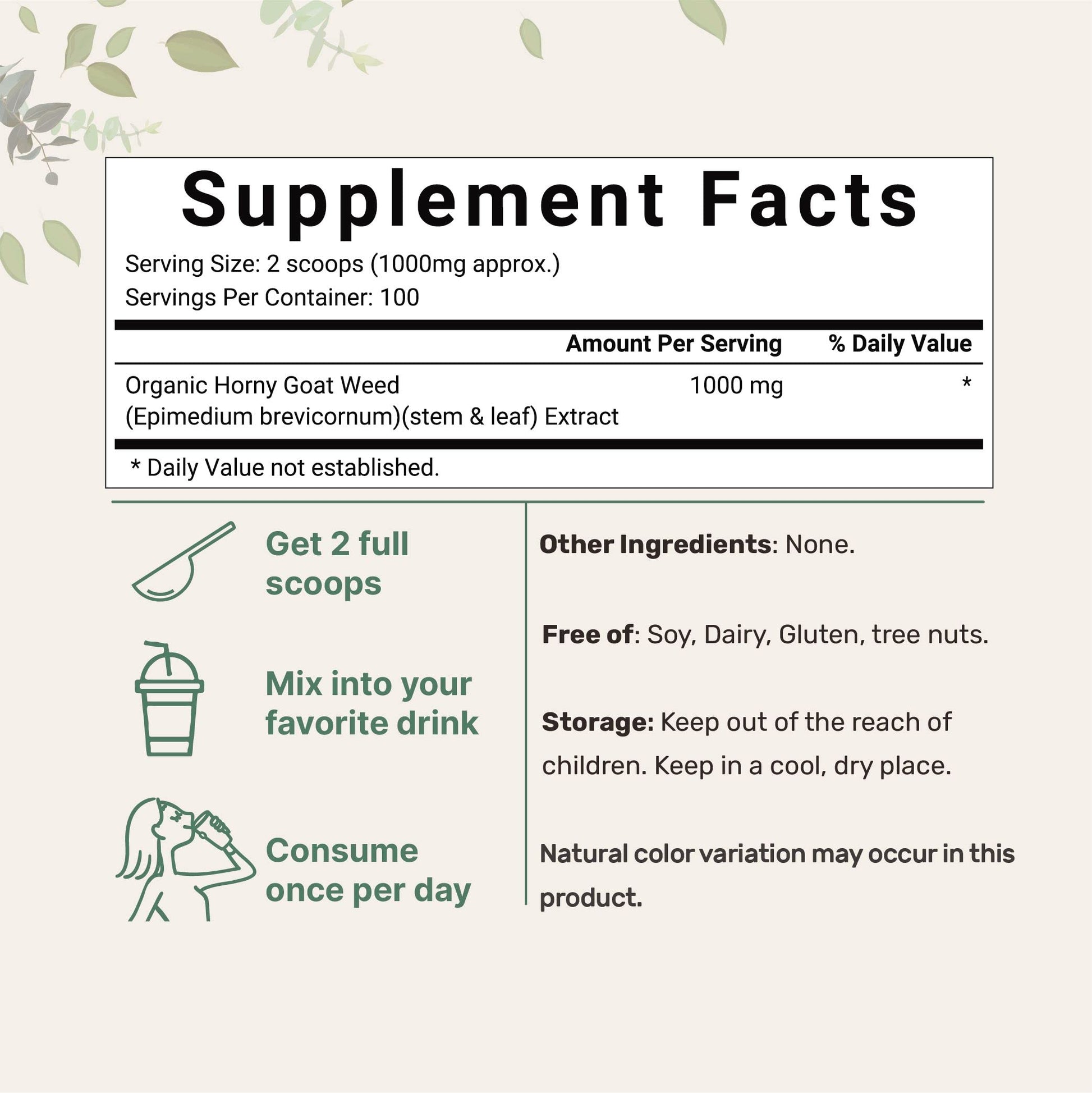 - Organic Pure Horny Goat Weed for Women & Men (Epimedium Extract with Active Icarrins), 100 Grams, Vegan Friendly.