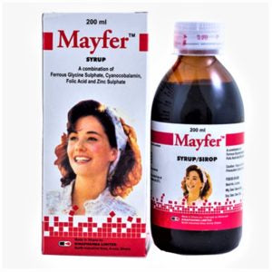Mayfer Syrup is used for Treatment of megaloblastic anemias due to a deficiency of folic acid, Treatment of anemias of nutritional origin, Pregnancy, Infancy, Or childhood, Anemia, Iron deficiency due to poor absorption and chronic blood loss, Vitamin b12 deficiency, Pernicious anemia, Diarrhea, Wilson’s disease, Acne, Age related vision loss and other conditions.