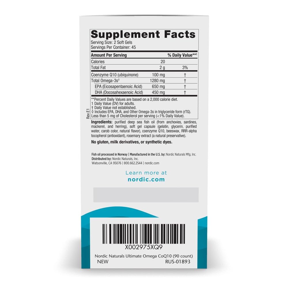 - WHY OMEGA-3 + COQ10 - Ultimate Omega + CoQ10 combines high-potency, concentrated fish oil and Coenzyme Q10 (CoQ10) for cardiovascular health, normal cellular energy levels, and antioxidant support.