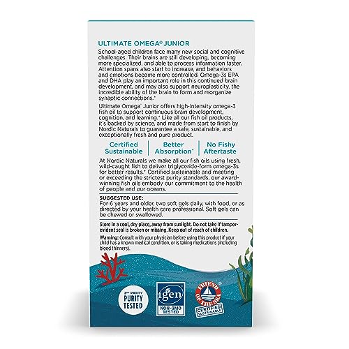- WHY OMEGA-3S - The omega-3s in Ultimate Omega Jr. benefit brain health, mood, and learning, as well as normal cognitive function and social development.