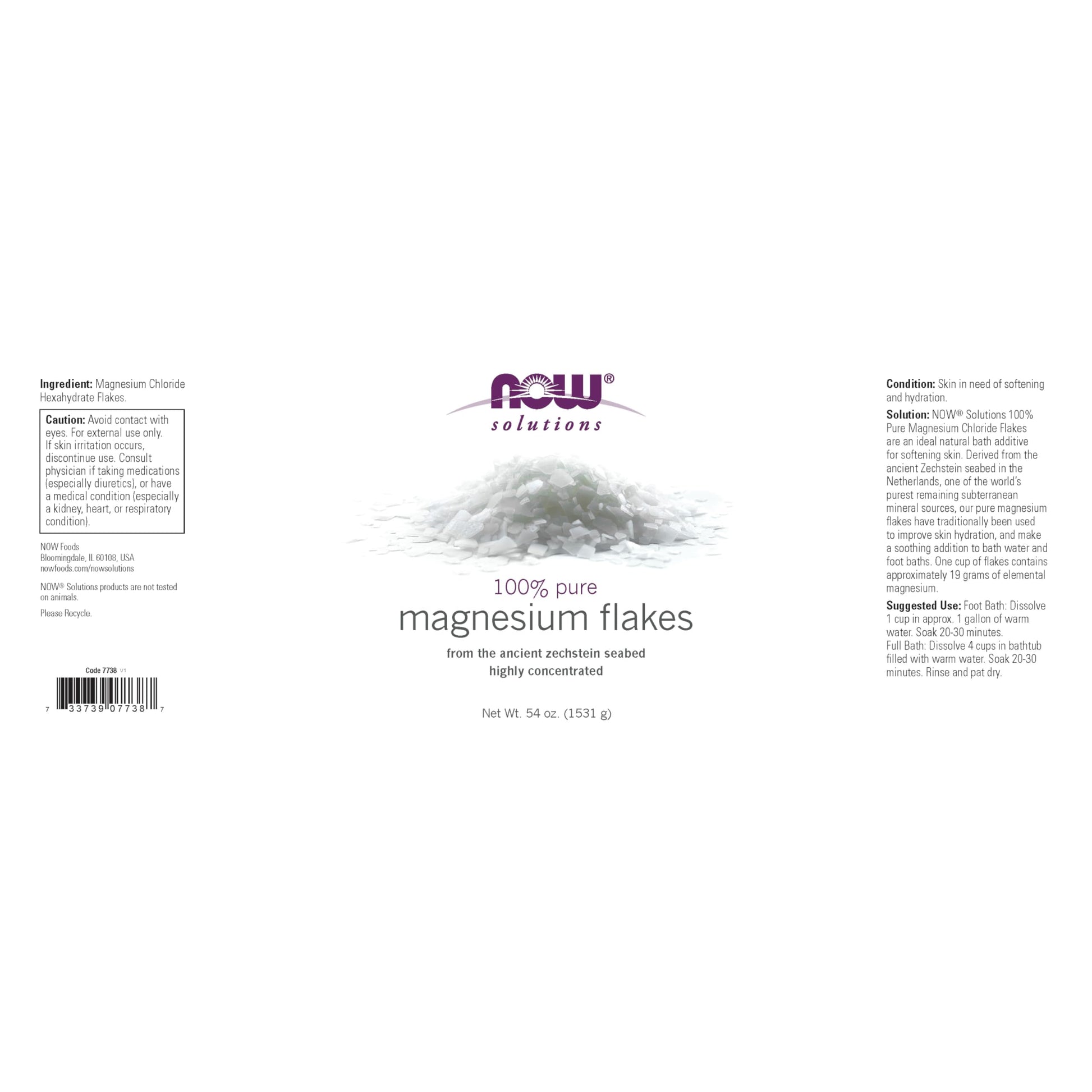 Details: Discover the enriching power of NOW Solutions Magnesium Flakes, sourced directly from the ancient Zechstein seabed in the Netherlands for unmatched quality and purity. These 100% pure magnesium chloride hexahydrate flakes are a natural humectant, helping to hydrate and soften skin while improving the complexion without any oily residue. Ideal for a full-body bath or a simple foot soak, add these flakes to warm water to minimize body odors naturally and enhance skin hydration. Certified cruelty-free by PETA and free from artificial chemicals, fragrances, or dyes, these magnesium flakes are rigorously tested in NOW’s ISO-certified laboratories, ensuring top quality and safety for your peace of mind. Transform your bath routine into a spa-like experience with the holistic benefits of premium magnesium flakes.