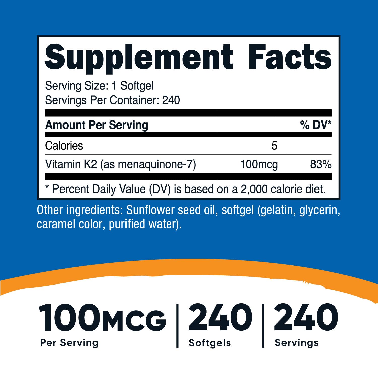 - 100mcg of Vitamin K2 in every serving - 1 Serving: Just 1 Softgel