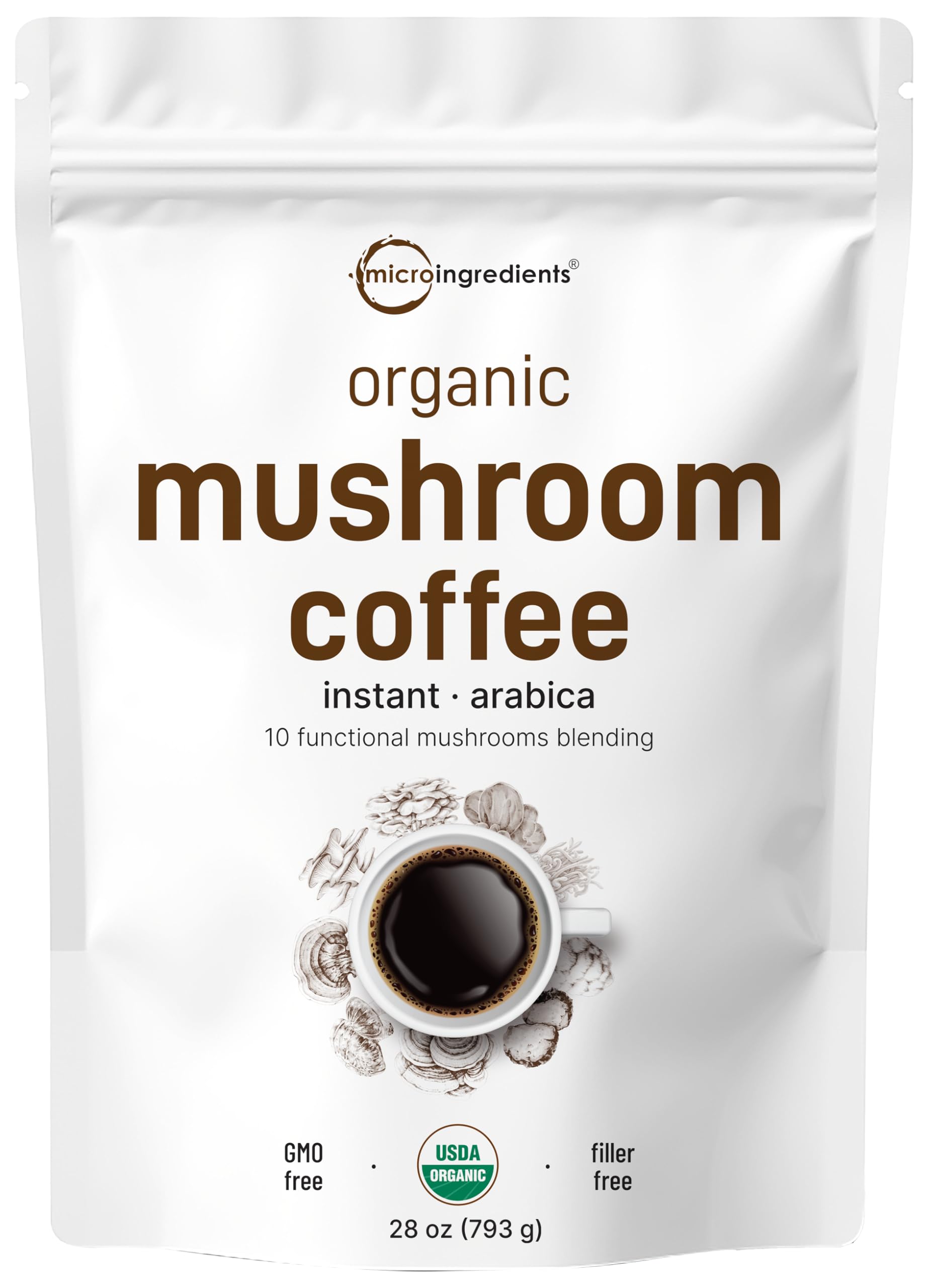 Pre-Order | Arrives in 5–10 Days – Organic Instant 10 in 1 Mushroom Coffee Powder, 28 Ounce (317 Servings) | Weight & Immune Support | Premium Arabica Coffee with Lion’s Mane, Chaga, Reishi,& More