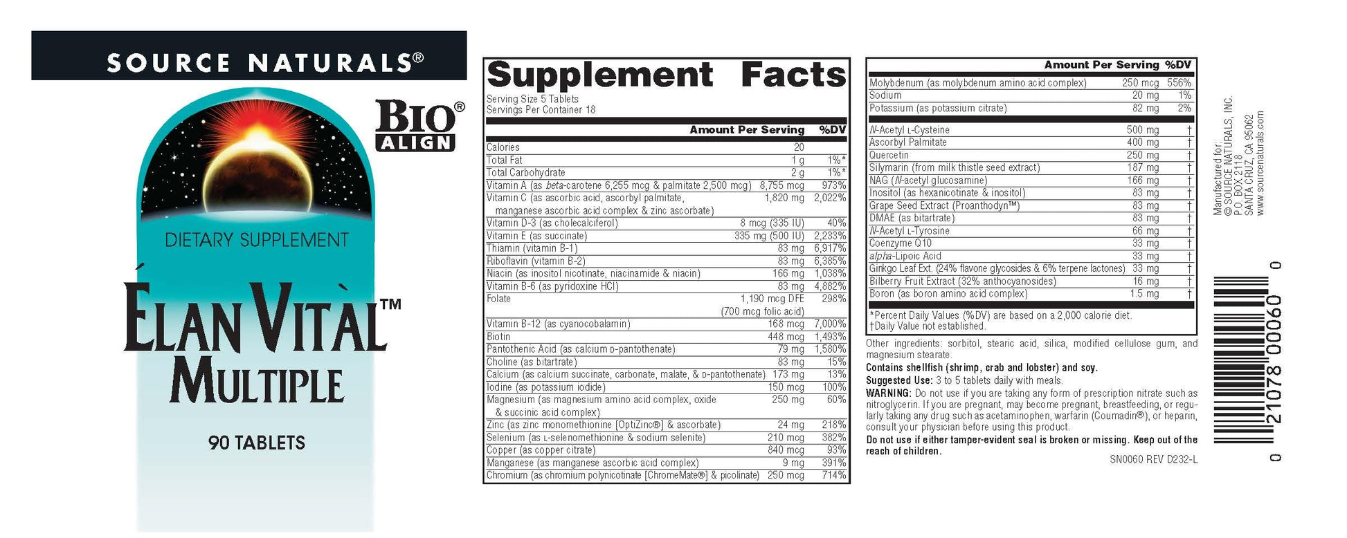 Pre-Order | Arrives in 5–10 Days – Source Naturals Elan Vital Multiple, for Multiple Body System Support* - 90 Tablets