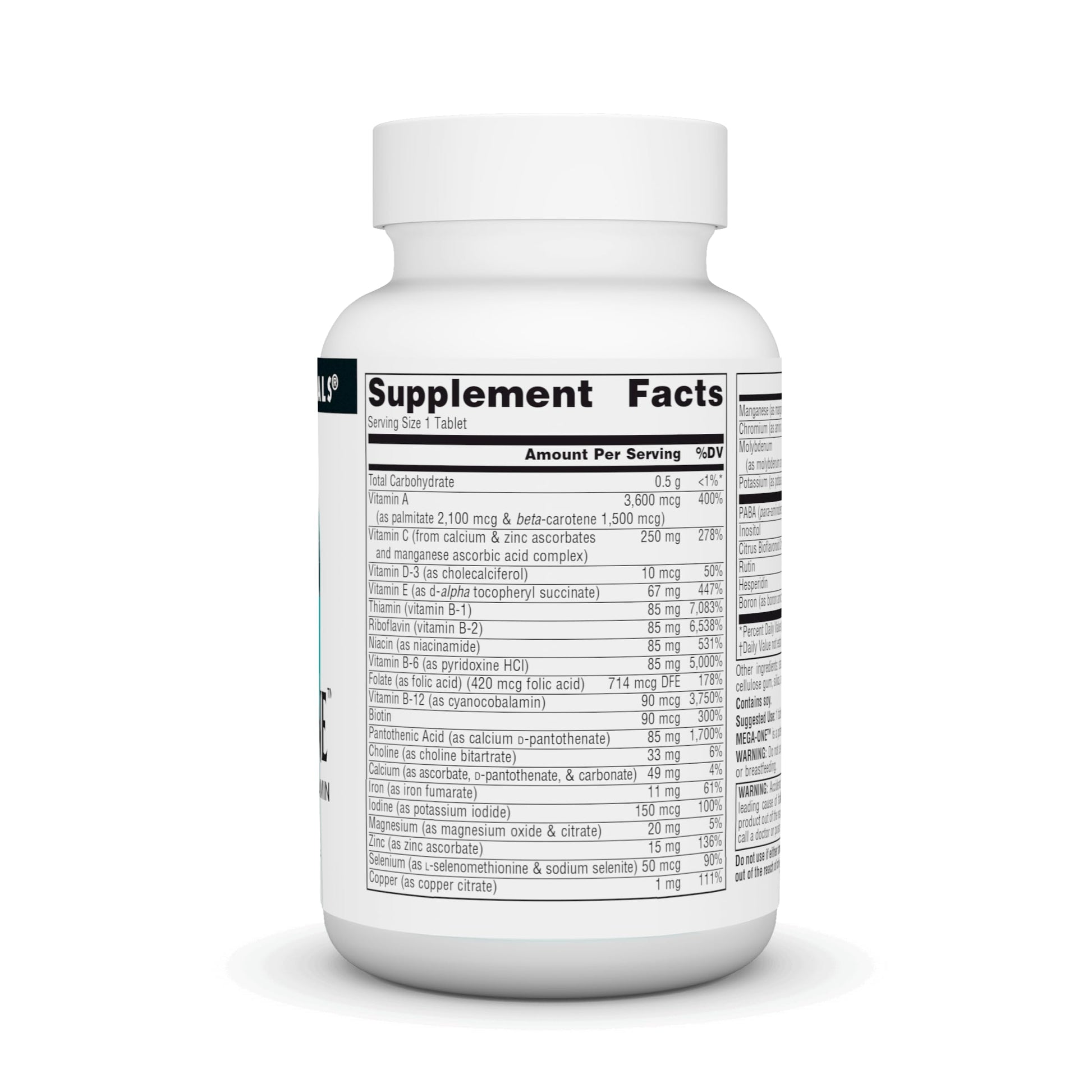 Details: Mega-One is a potent one-tablet-a-day multi-vitamin. The suggested use of this supplement is to have 1 tablet per day with a meal.