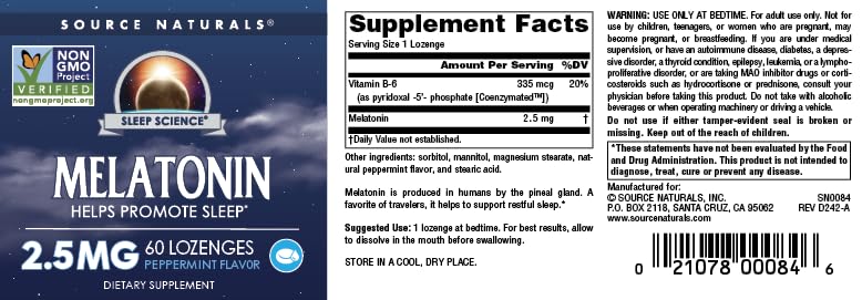 Pre-Order | Arrives in 5–10 Days – Source Naturals Melatonin, Helps Promote Sleep* 2.5 mg - 60 Peppermint Flavored Lozenges