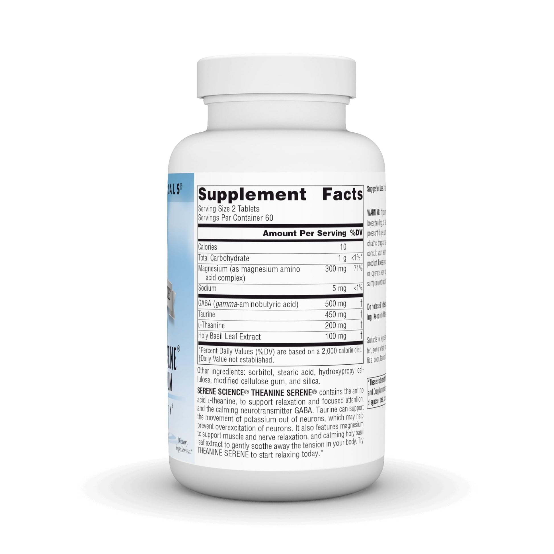 - Serene Science Theanine Serene contains the amino acid L-theanine, to support relaxation and focused attention, and the calming neurotransmitter GABA.